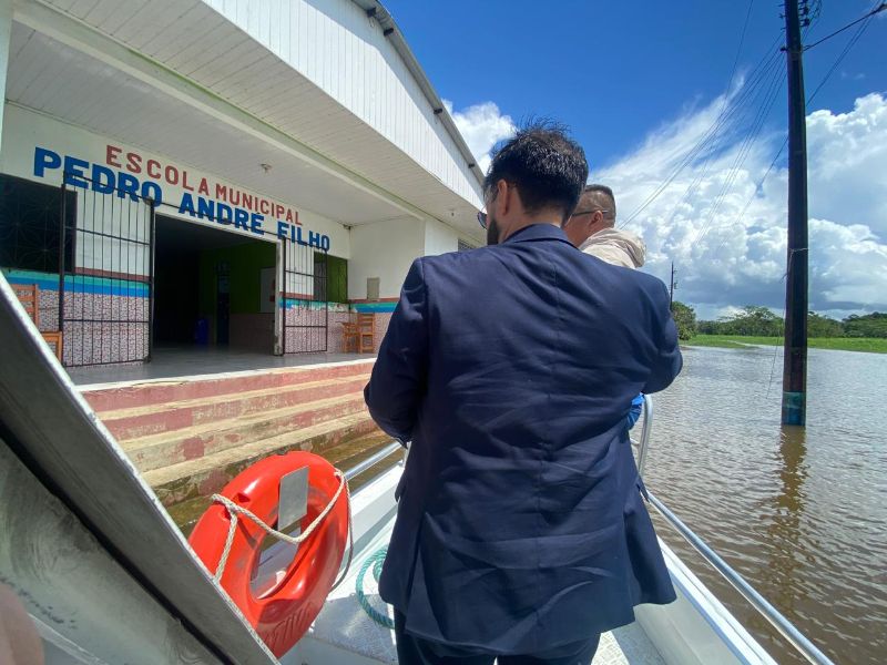 No município de Fonte Boa, o promotor Aramis Pereira Júnior visitou cinco escolas rurais. Três delas utilizam apenas água da chuva, armazenada em recipientes improvisados com adição de cloro, sem garantia de potabilidade. As demais contam com poço artesiano, mas não possuem laudos técnicos da qualidade da água.